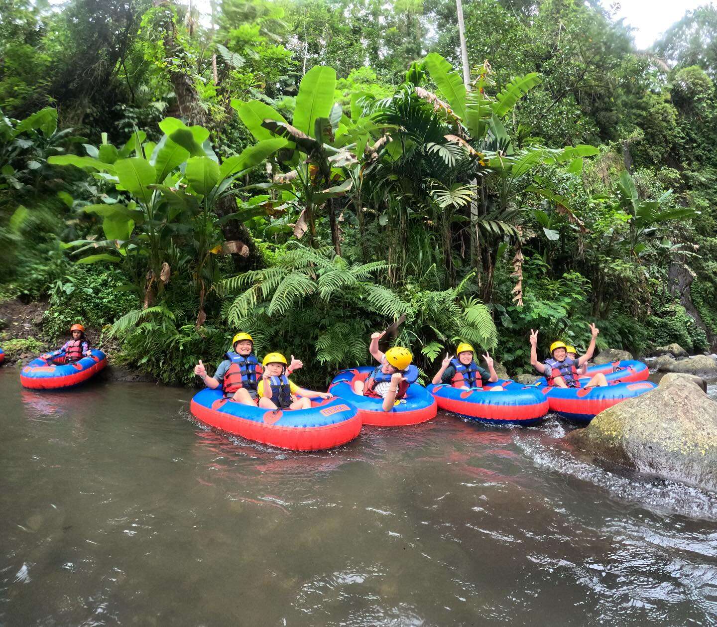 - Tubing adventure down a scenic Bali river, surrounded by lush nature